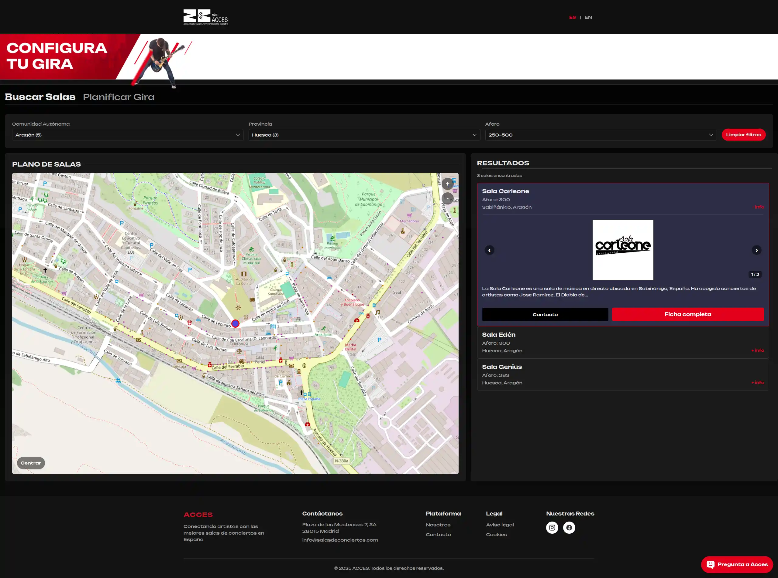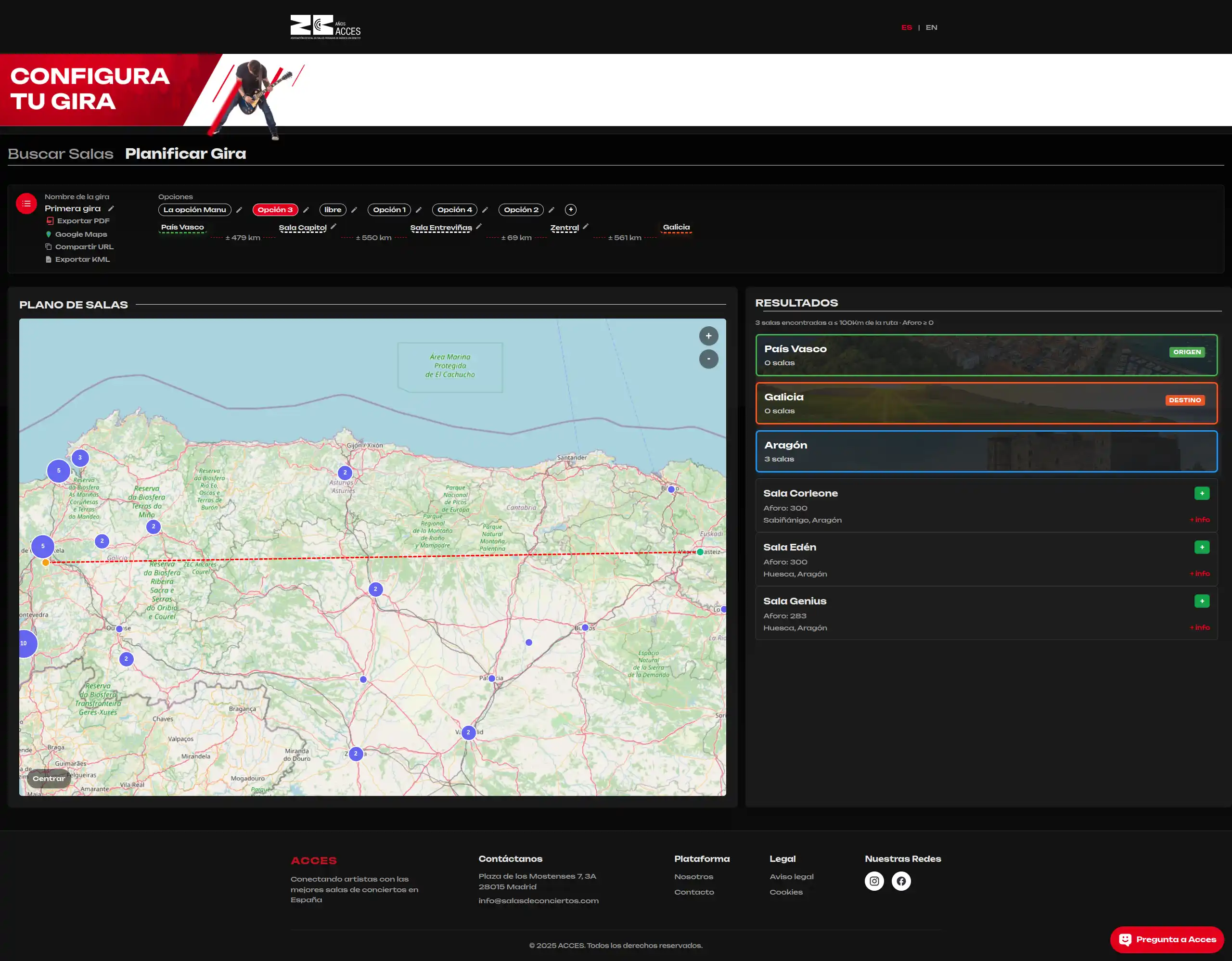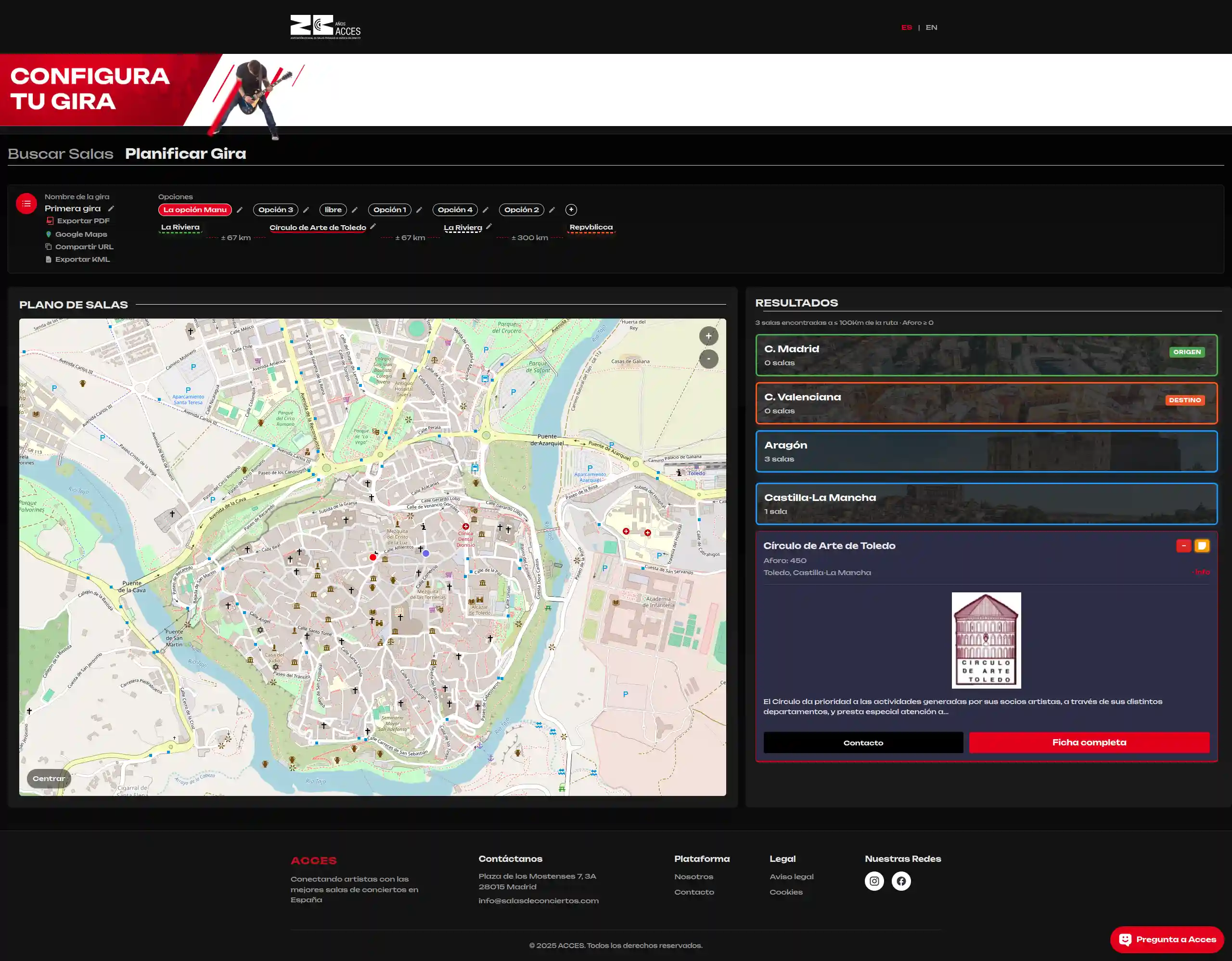 La plataforma ofrece una solución integral para la planificación y gestión de giras, comenzando por un potente módulo de búsqueda y exploración de salas ya disponible en producción.