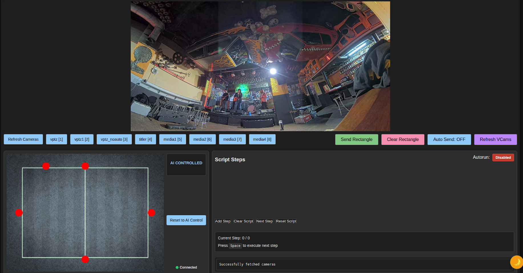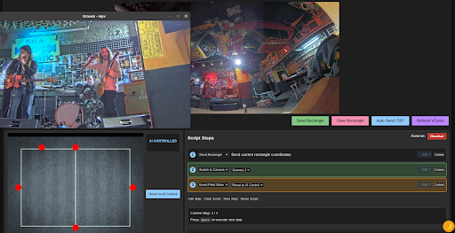 Ademas el sistema puede reportar sobre el vídeo en directo los encuadres que estan disponibles, para que el realizador sepa exactamente que se esta viendo por cada una de las cámaras y que decisiones de realización se están tomando de modo automático por la IA.